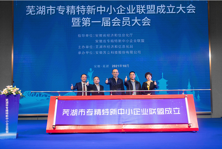 2021年10月26日,在安徽省經(jīng)濟和信息化廳、省專精特新中小企業(yè)聯(lián)盟的指導下,由蕪湖市經(jīng)濟和信息化局主辦,安徽蘇立科技股份有限公司承辦的“蕪湖市專精特新中小企業(yè)聯(lián)盟成立大會暨第一屆會員大會”在蕪順利召開。